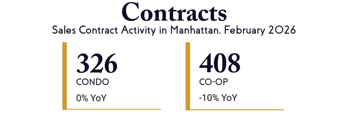 Condo contracts held steady year-over-year, with median prices rising 10% to $1.91M from $1.73M. Co-op contracts dipped about 10%, but median prices remained stable at $827K, reflecting selective buyers rather than weakening values.